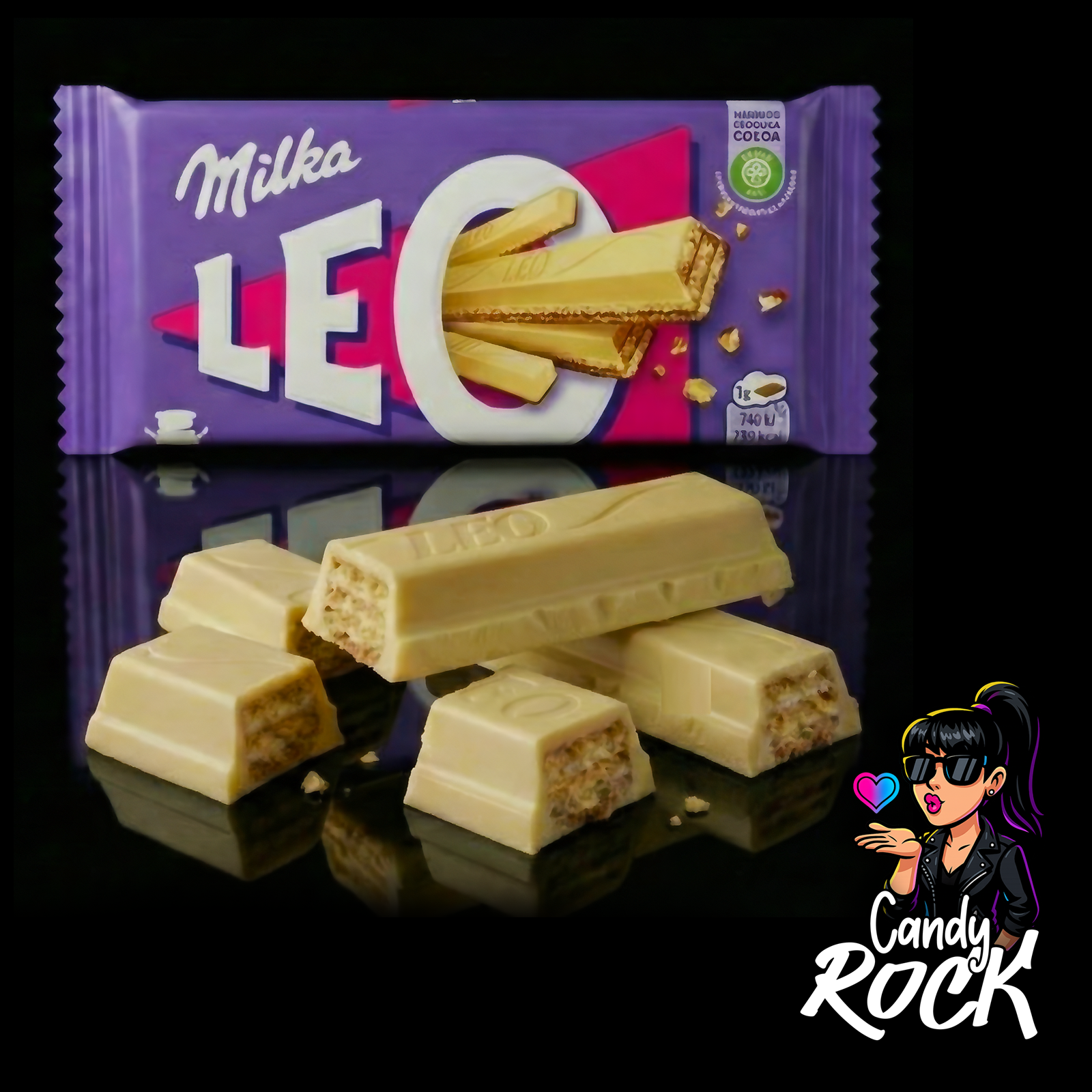 Chocolat blanc doux et lisse, gaufrettes croustillantes en couches, cœur délicatement fondant. La Milka Leo White joue la carte du contraste élégant : ça croque, ça fond, et ça se mange sans réfléchir. 🤍🍫